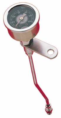 Öljynpainemittari 60 P.S.I , sopii 1984-1999 Evolution Big Twin mallit. Mittarin kiinnitys tapahtuu yhden venttiilikopan ruuvin alle ja öljynpaine mitataan siitä missä on alunperin merkkivalon anturi. Jos haluat myös merkkivalon jättää toiminaan niin tilattava myös jakokappale 18196 tai 18197 ( musta ).