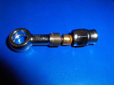 Itsekasattava kromattu banjoliitin missä on 11 mm (käy 7/16") reikä pultille.
