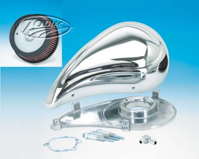 Tyylikäs ilmansuodatinasetelma CV-Keihin kaasuttimeen. Sopii kaikkiin malleihin missä CV-Keihin on ollut käytössä kuten esimerkiksi Sportsterit 1991 alkaen, Big Twinit 1990-1999, Twin Camit 2000 alkaen. Käytettävä lisäksi asianmukaista tukea ja ulkopuolista huohotinsuodatinta. Mitat ovat 7 5/8" x 12 3/4" x 3 1/2". Mukana seuraa vapaavirtaussuodatin ja tarvittavat pikkusälät.