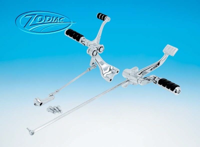 Kromattu jalkahallintalaite sarja missä jarru- ja vaihdevivut ovat valmistettu alumiinista ja ovat kromatut. Vastaavia on käytetty 2004 ja uudemmissa H-D tehtaan siirtosarjoissa. Kumi vaimennuksella varustetut jalkatapit sisältyvät toimitukseen mukaan. Korvaa H-D Oem 33395-04.
