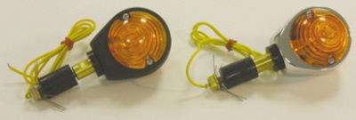 E-hyväksytyt kromatut tangonpäävilkut 21 W polttimolla. Kiinnittyy paisuvan kumiholkin avulla ohjaustangon päihin. Myydään pareittain. Kuvassa oikealla.
