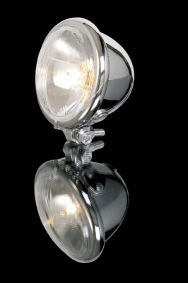 Bates-tyylinen 4 1/2" etuvalo E-hyväksytyllä umpiolla (lasikupu polttimo). Umpiossa on lyhyet ja pitkät valot sekä parkkivalo. Tässä on pohjakiinnitys ja kuoret ovat kromatut.