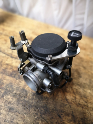 Ryyppyvaijerin pidike CV-Keihin kaasuttimeen. Valmistettu ruostumattomasta teräksestä ja kiillotettu. Mukana seuraa pidempiä rst-ruuveja tarpeellinen määrä. Voidaan käyttää tarvike ilmansuodattimien kanssa. Ei mahdu muovisen alkuperäisen suodatinkotelon kanssa. Pidikkeen voi asentaa myös kannen alapuolelle jolloin saadaan lisätilaa yläpuolelle ( isot tankit vaatii näin ).