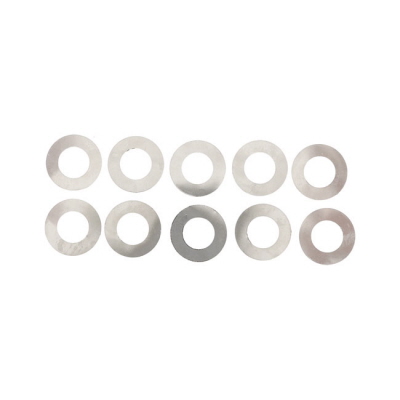 Kartiorullalaakereiden välyksen säätölevy. Navan keskiholkin pituutta muuttamalla laakerivälys myös muuttuu. Tämän paksuus on 0,002" ( 0,05 mm ). Sisäreikä on noin 19 mm. Korvaa H-D oem. 43294-82. Myydään kappaleittain. Huom. yleensä tavoitellaan 0,1 - 0,2 mm päittäisvälystä.