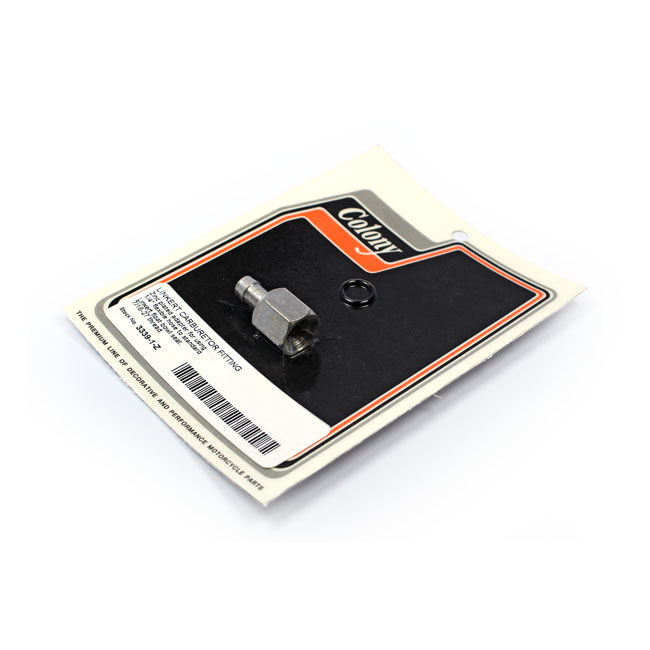 Sinkattu sovitenippa bensansyöttöön. Voit korvata alkuperäisen metalliputken 1/4":n kumiletkulla tämän avulla. Sisäkierre on 7/16"-27. Sopii kaikkiin H-D malleihin 1933-65 missä Linkert M ( poislukien. 58-65 Servi-Car ).